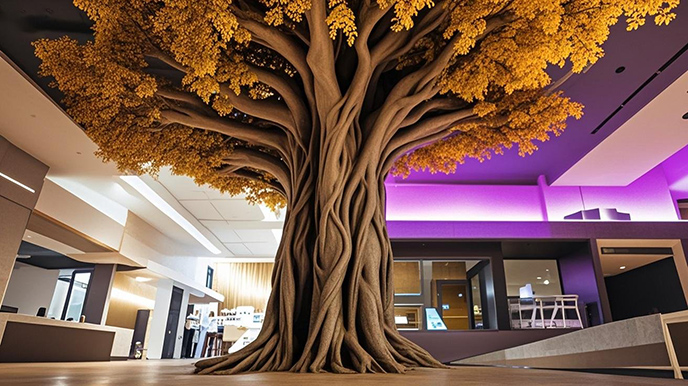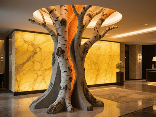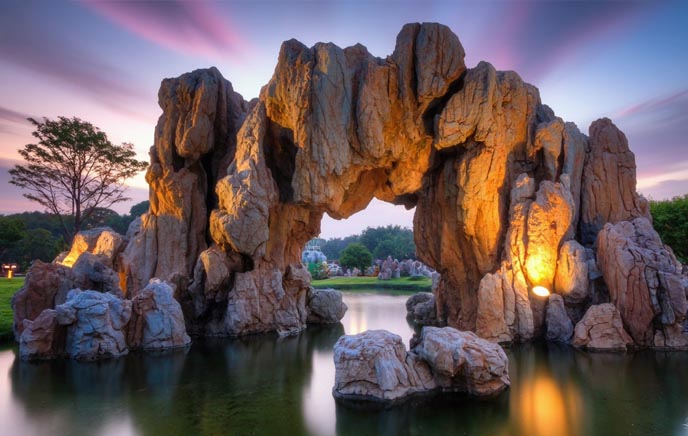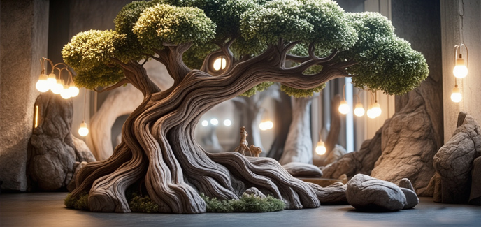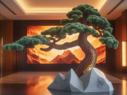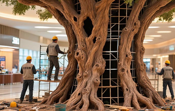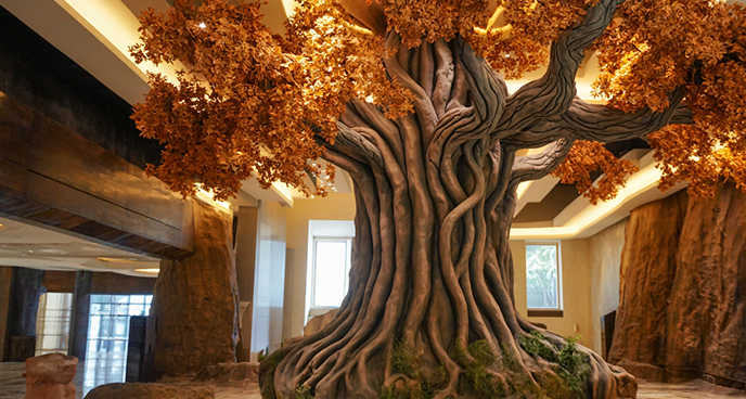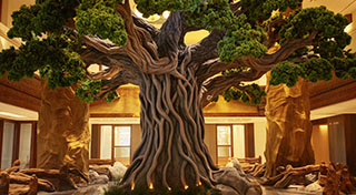 在制作仿真樹大門時不要局限于樹種,也不要局限于樹種的搭配,不要局限于以前的樹和樹搭配、樹和山搭配,要開拓思路,樹可以和城堡搭配也可以和其他建筑搭配,另外樹皮的形狀和顏色也可以做很大的修改,總之要把仿真樹做到很隨意,充分發揮可利用的條件才能把仿真樹做到好。