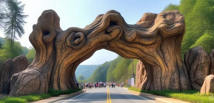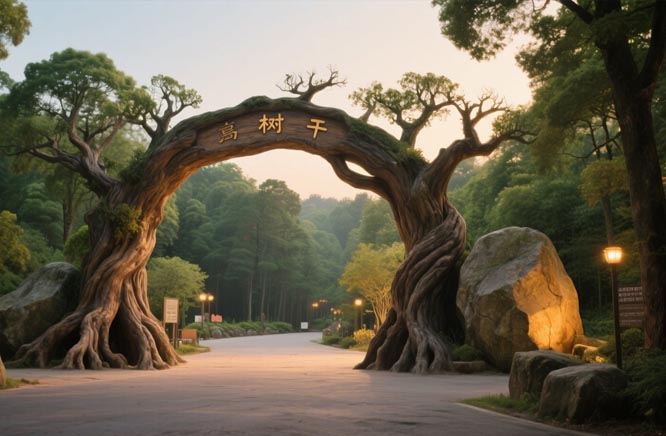 仿真樹大門有多種,有寫實的仿真樹大門、有卡通仿真樹大門,還有不同樹種的仿真樹大門,北京廠家可任何形狀的仿真樹大門,如果把思路開闊一下,可以這樣說:有什么樹,就可以有什么樣的仿真樹大門,中國南方和北方的常見樹種有幾百種,還不算稀有樹種,所以制作仿真樹大門時不要局限在現在常做的榕樹仿真大門和古樹仿真大門上。