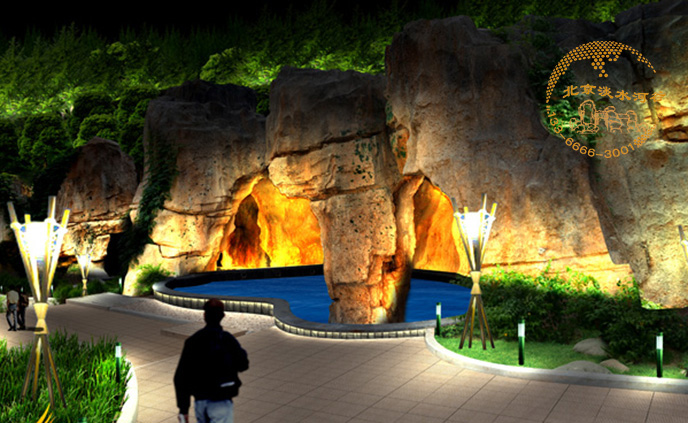 上圖為山洞的塑石假山圖片,也是塑石假山設(shè)計(jì)圖片,從塑石假山的造型到光源的配置都能體現(xiàn)出設(shè)計(jì)者的深厚功底,也是一張很好的塑石假山圖片。