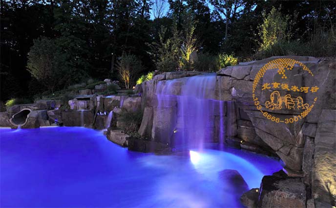 傍晚的塑石假山攝影,這張圖片顯示的塑石假山是北京廠家在海南碧桂園別墅制作的塑石假山,在傍晚時(shí)分,塑石假山顯得雍容華貴,在燈光的襯托下,整個(gè)塑石假山體現(xiàn)出一種高雅的感覺。
