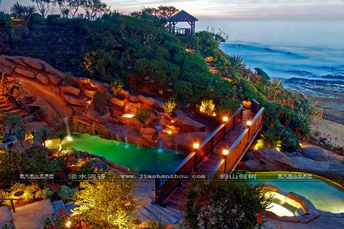 更常見的景觀植被元素融入水泥假山瀉湖池中,由熱帶植物組成,如棕櫚樹,芙蓉屬植物,天堂鳥和公主花。郁郁蔥蔥的葡萄藤也常用于整個泳池周圍。向您當地的種植園主和景觀設計師咨詢適合您的水泥假山泳池。