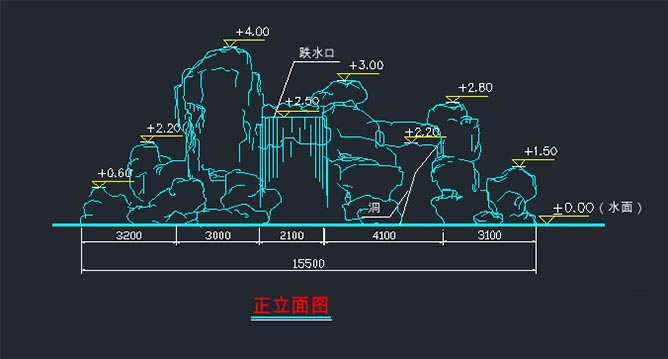 項目描述:典型的塑石假山施工圖?,模仿常見的風化巖的塑石假山,塑石假山長15.5米、高4米 、寬3米,有一處疊水、一處山洞,模仿風化巖的塑石假山比模仿黃蠟石的塑石假山容易施工,在做施工圖時也可隨意發揮一下。