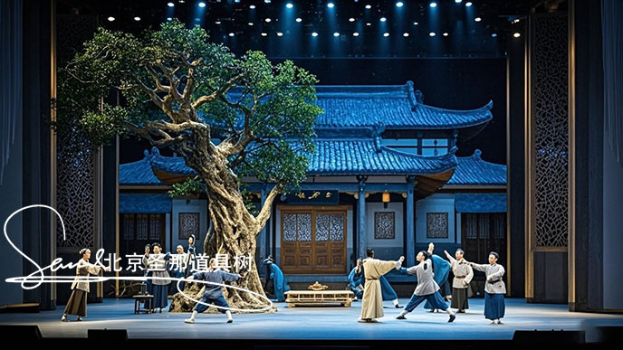 能制作舞臺道具樹的樹種很多,常見的用仿真榕樹、仿真槐樹制作舞臺道具樹,現在北京用仿真面包樹制作舞臺道具樹,效果也很好,客戶在排練一些涉及非洲的節目時會用到當地的樹種,比如當地標志性的樹種-面包樹。